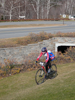 Sunday was the 'cross race - temps were a little warmer, starting out around 34 F. This was a tough course that really put a focus on endurance more than technical skills, although where the course was technical, you really needed to be on your game. Again, all of the beginners lined up together for the start, and for the second day, I ended up with the hole shot. This was NOT to be a good strategy for me, however, as I was apparently tired from the previous day.